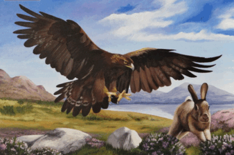 Quạ thấy chó ngậm khúc xương quá ngon, bèn đánh liều lao xuống mổ vào đầu chó. Bị bất ngờ, chó bỏ chạy để lại khúc xương. Quạ ngoạm lấy khúc xương nhưng nặng quá không tha nổi....