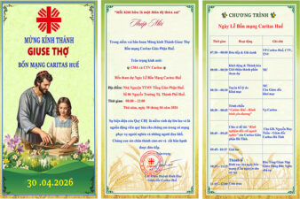 Ngày Lễ Bổn Mạng Caritas Huế sẽ được bắt đầu vào lúc 07g30 đến 12g00 ngày 30.04.2026 tại Trung Tâm Mục Vụ TGP Huế.