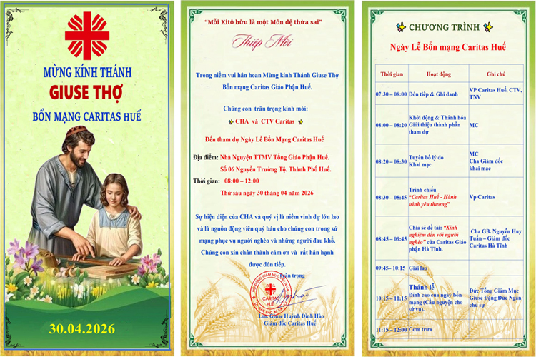 Thiệp mời Ngày Lễ Bổn Mạng Caritas Huế dịp Lễ Thánh Giuse Thợ