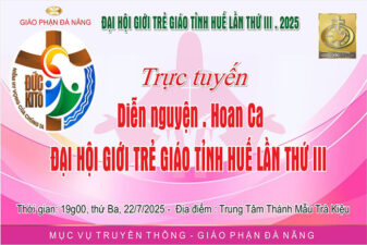 22/07/2025Diễn Nguyện, Hoan Ca – Đại Hội Giới Trẻ Giáo Tỉnh Huế Lần Thứ III – Tại Trung Tâm Thánh Mẫu Trà Kiệu – Giáo Phận Đà Nẵng