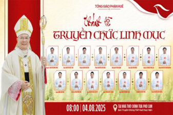 Đức Tổng Giám mục Đặng Đức Ngân đã chọn gọi quý Thầy và quý Tu sĩ sau đây lên chức Linh mục. Thánh lễ Truyền chức Linh mục do Đức Tổng Giám mục Giuse Đặng Đức Ngân chủ tế lúc 08g00 thứ Hai, ngày 04.08.2025 – Nhà thờ Chính toà Phủ Cam.