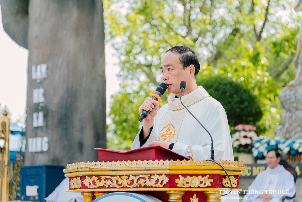 Trong bài giảng lễ, Đức Cha Phanxicô Xaviê nhắc lại biến cố Đức Mẹ hiện đến với các giáo dân tại rừng núi La Vang năm 1798 để an ủi khi họ đang chịu cảnh bách hại. Khởi đi từ Tin Mừng, Đức Cha Phanxicô Xaviê nhấn mạnh đến cuộc viếng thăm của Đức Maria đến nhà của bà Êlizabeth và ông Dacaria, đem Chúa đến với nhà người chị họ và trẻ Gioan đang còn trong bụng mẹ. Ngài nhấn mạnh, Đức Maria đã không giữ niềm vui có Chúa ở cùng cho riêng mình, không giữ để hưởng thụ một mình, nhưng Mẹ đã lên đường, lan toả, chia sẻ niềm vui ấy cho gia đình người chị họ, và xa hơn là cho nhân loại chúng ta.
