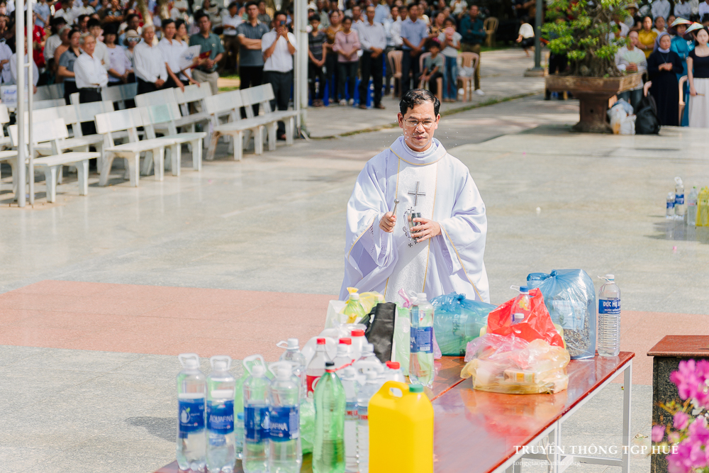 Sau lời nguyện hiệp lễ, Cha Phaolô Trần Văn Quang – Quản xứ La Vang, Thường vụ Trung tâm Hành hương Đức Mẹ La Vang nhắc lại thông báo về chương trình kỳ Hành hương Thường niên 2025. Cha Phaolô cũng cám ơn các ban ngành đã cộng tác tổ chức Thánh lễ Hành hương này, đồng thời mời gọi cộng đoàn cầu nguyện cho kỳ Hành hương Thường niên sắp đến được diễn ra trong Thánh ý Chúa và Đức Mẹ.