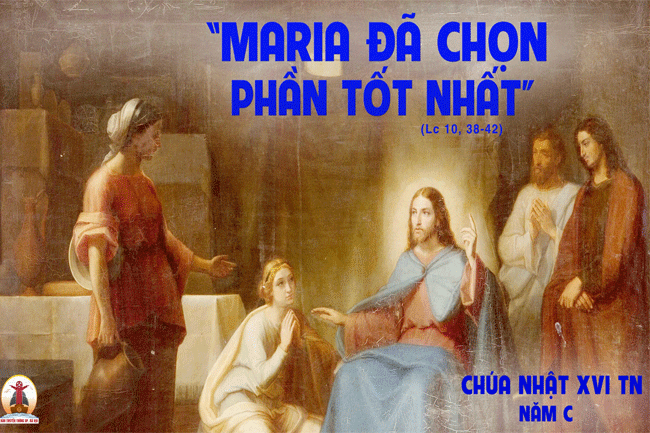 Đức Giê-su đón nhận sự phục vụ của Mác-ta và đưa ra bậc thang giá trị, cần “chọn phần tốt nhất”. Chọn Lời Chúa và lắng nghe. Đó chính là “phần tốt nhất”. Lắng nghe Lời chính là làm cho tâm hồn thành mảnh đất trổ sinh hoa trái (x. Lc 8,4-15). Hạnh phúc của Đức Mẹ là “lắng nghe Lời Chúa và đem ra thực hành” (x. Lc 1,27-28).