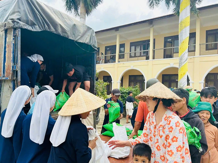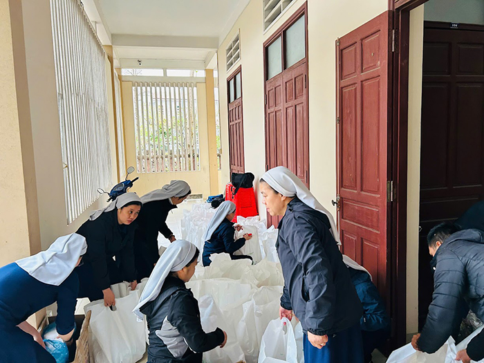 Huế vừa trải qua trận lũ lịch sử khá kinh hoàng vào tháng 10 vừa qua, đã gây ra nhiều ảnh hưởng nặng nề đến đời sống của người dân. Và khi đứng trước cảnh các gia đình đang phải oằn mình, chống chọi với tử thần giữa những cơn lũ bão tại các tỉnh Quy Nhơn, Phú Yên, các Nữ tu Hội Dòng Con Đức Mẹ Đi Viếng Huế cảm thấu được cảnh mất mát, khổ cực mà người dân nơi đây phải đương đầu với những khó khăn do lũ lụt đang gây ra. Như tình yêu Đức Kitô thúc bách chị em, cùng với sự cộng tác, chung tay của nhiều ân nhân xa gần, vào lúc 19g30 ngày 26.11.2025, một số chị em trong Hội Dòng đã lên đường đến thăm những người dân tại Giáo xứ Mằng Lăng – Phú Yên.