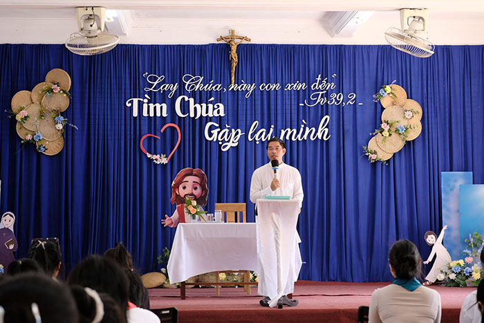 Trong hai ngày 12 – 13.07.2025, hơn 100 bạn trẻ đã quy tụ tại Tuyển viện Hội Dòng Con Đức Mẹ Vô Nhiễm Huế để cùng nhau sống những ngày ý nghĩa trong Khoá Định Hướng Ơn Gọi. Giữa không gian thân thương của Tuyển viện, các bạn đã có cơ hội gặp gỡ, khám phá và lắng nghe chính mình – một hành trình để nhận ra đâu là tiếng Chúa đang mời gọi. Từ những hoạt động sinh động đến những giờ phút hồi tâm lặng lẽ, từng trải nghiệm đều là những dấu ấn khó phai trong hành trình tìm kiếm ơn gọi của các bạn trẻ.