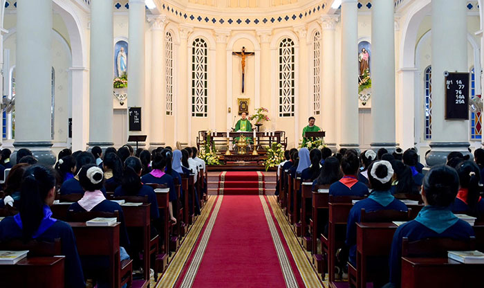 Ngày mới bắt đầu bằng Thánh lễ sốt sắng tại nguyện đường của Hội dòng.