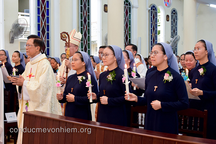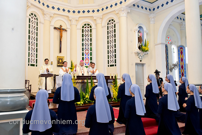 Qua Thánh lễ do Đức TGM Giuse Đặng Đức Ngân chủ tế, mỗi người dâng lời tri ân sâu xa lên Thiên Chúa vì muôn ơn lành Ngài đã thương ban cho Hội dòng và từng chị em trong hành trình ơn gọi. Đặc biệt, lời khấn trọn đời là tiếng “xin vâng” dứt khoát và trung thành, là sự hiến dâng toàn thân để trở nên của lễ sống động cho Thiên Chúa như chính Đức Kitô đã dâng hiến mình cho nhân loại. Sau hành trình cầu nguyện, phân định và vượt qua bao thử thách, hôm nay, 13 chị em can đảm thưa lên lời cam kết vĩnh viễn, gắn bó trọn đời với Đức Kitô trong tình yêu giao ước. Từ đây, cuộc đời của các chị được hiến dâng trong yêu thương và phục vụ, trở thành dấu chỉ sống động của niềm vui Tin Mừng giữa lòng thế giới.