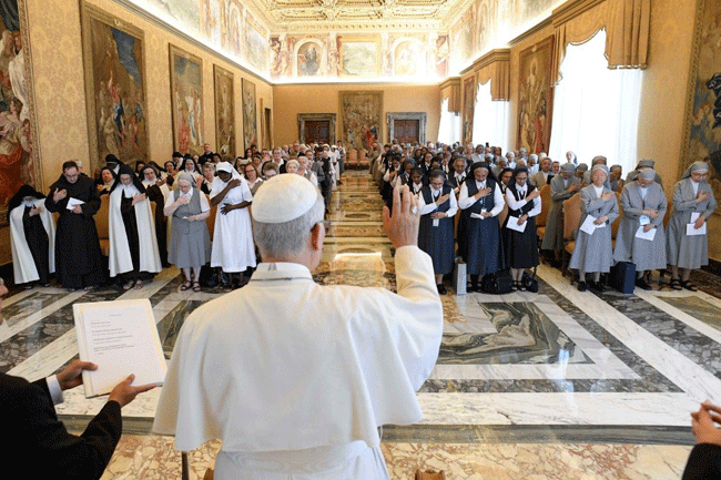 Trong bài huấn từ, ĐTC Lêô XIV nhấn mạnh nét chung của các Hội dòng là tinh thần can đảm ngay từ buổi khởi đầu. Ngài lấy cảm hứng từ sách Châm Ngôn: “Ai tìm được một người nữ đảm đang? Nàng quý giá vượt xa châu ngọc” (Cn 31,10), và khẳng định: Thiên Chúa đã tìm thấy nhiều phụ nữ can đảm, dám mạo hiểm, hy sinh và trung thành để đáp lại tiếng gọi của Người. Họ đã mở lối cho biết bao thế hệ nữ tu tiếp tục dấn thân theo Đức Kitô khó nghèo, khiết tịnh và vâng phục, thậm chí đến độ hiến dâng cả mạng sống.