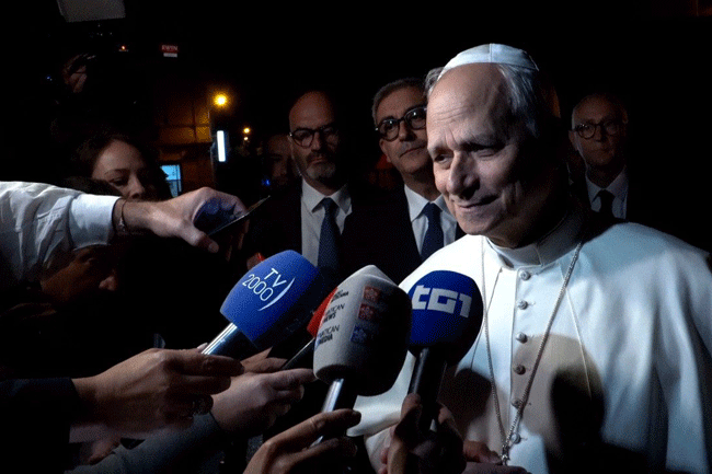 Nói về cuộc họp do Bộ trưởng Quốc phòng Hoa Kỳ Pete Hegseth triệu tập, với các lãnh đạo quân sự trong tư thế sẵn sàng chiến đấu, thậm chí sẵn sàng sử dụng vũ khí hạt nhân, ĐTC Lêô XIV cho rằng “kiểu nói này đáng lo ngại”, vì phản ánh tình trạng căng thẳng gia tăng. Ngài cũng bình luận về việc đổi tên Bộ Quốc phòng thành “Bộ Chiến tranh”, bày tỏ hy vọng nó “chỉ là ngôn từ”, đồng thời nhắc lại: “Chúng ta phải làm việc cho hòa bình”.