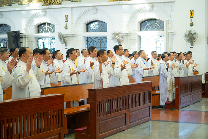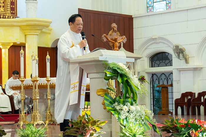 Kế đó, khởi đi từ bài Tin mừng, Đức cha nhấn mạnh ba yếu tố của Hội thánh: thánh thiện nhờ có Chúa Kitô hiện diện, yêu thương trong hiệp nhất được minh chứng qua phép lạ 153 con cá, và phục vụ trong sứ mạng “ngư phủ lưới người”. Từ đó, Đức cha chủ tịch gợi lên ba cách thế xây dựng Hội thánh: kiến tạo hiệp nhất giữa những khác biệt; cùng hiệp hành trong sứ vụ để thành công nhờ vâng lời Chúa; và xây dựng đời sống đức tin trên nền tảng Lời Chúa và việc Chúa làm. Đức cha khẳng định động lực tình yêu là yếu tố cốt lõi giúp Hội thánh đứng vững trước thử thách và mời gọi mọi người bước vào hành trình mới hướng tới một Hội thánh hiệp hành, phục vụ và yêu thương trong niềm hy vọng “trời mới đất mới”.