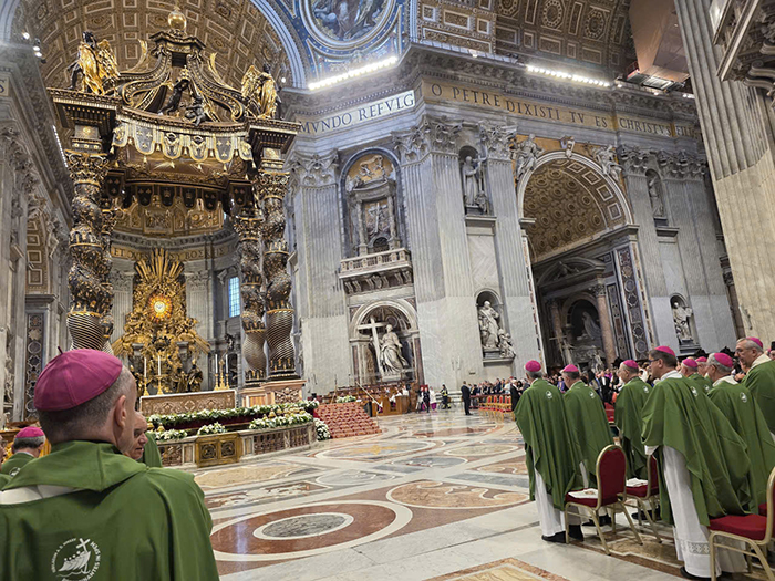 Hơn hai ngàn tham dự viên – gồm các giám mục, linh mục, tu sĩ và giáo dân – đại diện cho các nhóm hiệp hành ở cấp giáo phận, quốc gia và châu lục đã quy tụ tại Đại Thính đường Phaolô VI và nhiều địa điểm khác nhau để tạ ơn Chúa vì hành trình hiệp hành, đồng thời canh tân lại sứ mạng loan báo Tin mừng của mình.