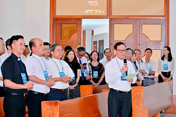 Trước khi kết thúc Ngày Khai Mạc, Đức Cha Chủ tịch, quý cha và toàn thề tham dự viên đã cùng cử hành Giờ Kinh Chiều trong tâm tình sốt mến để tạ ơn, tôn vinh Thiên Chúa và cầu nguyện cho các gia đình.