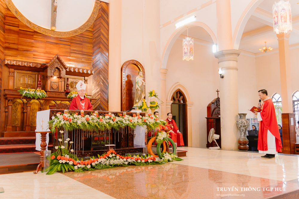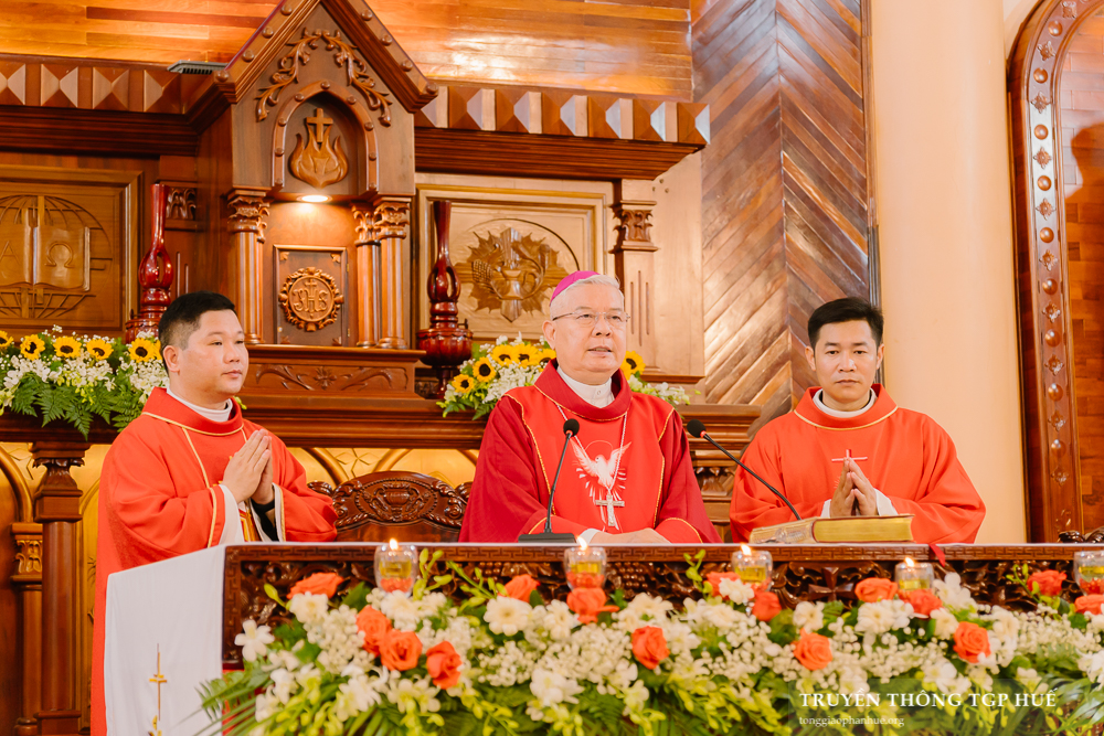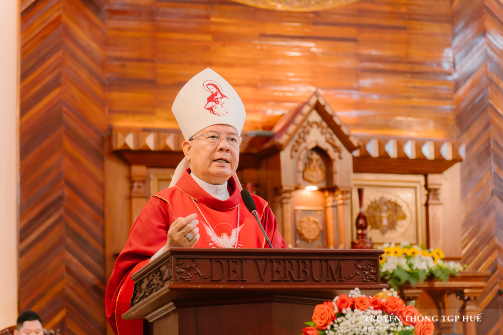 Mở đầu Thánh lễ, Đức TGM Giuse bày tỏ niềm vui khi được lần thứ 2 đến với Giáo xứ Khe Sanh – một Giáo xứ truyền giáo miền núi, rộng lớn, xa xôi cách trở nhất của TGP và giáp với biên giới Lào. Ngài nhấn mạnh khi đến với Giáo xứ, cùng với anh chị em người Kinh, ngài cảm thấy sức sống mãnh liệt của Giáo hội, một niềm hy vọng tràn trào nơi anh chị em sắc tộc. Ngài cũng mời gọi cộng đoàn cầu nguyện cách riêng cho các em sắp lãnh Bí tích Thêm sức luôn cố gắng sống xứng đáng với những hồng ân Chúa Thánh Thần ban tặng.