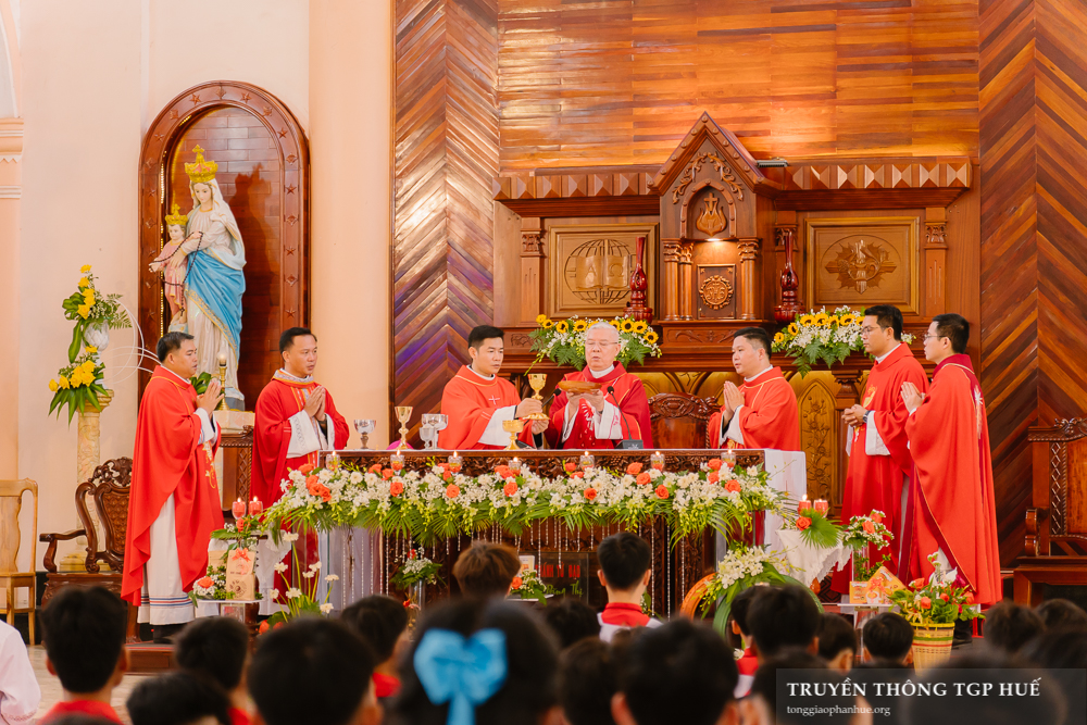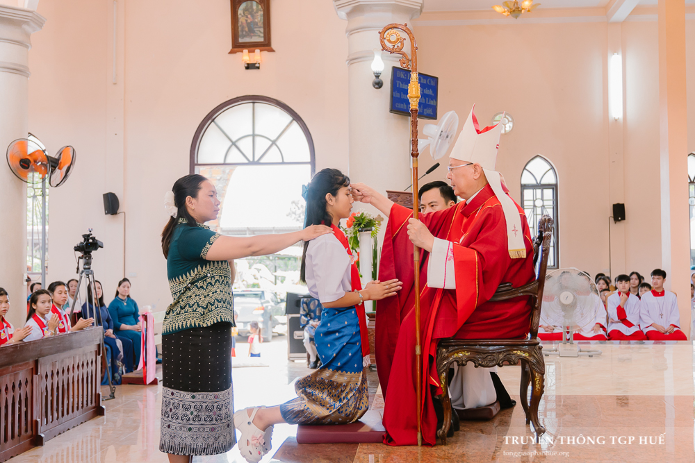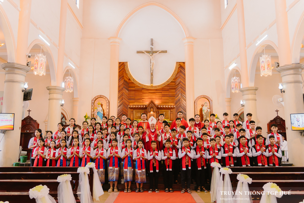 Lúc 09g00 sáng Chúa nhật ngày 03.08.2025, Đức Cha Giuse Đặng Đức Ngân – Tổng Giám mục (TGM) Tổng Giáo phận (TGP) Huế đã chủ sự Thánh lễ ban Bí tích Thêm sức cho 70 em thiếu nhi tại Giáo xứ Khe Sanh. Trong số đó có 32 em thiếu nhi sắc tộc Vân Kiều và 38 em thiếu nhi người Kinh.