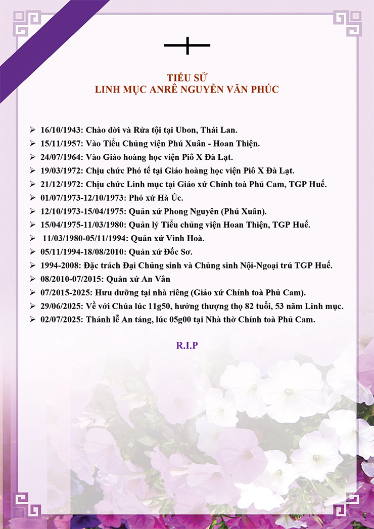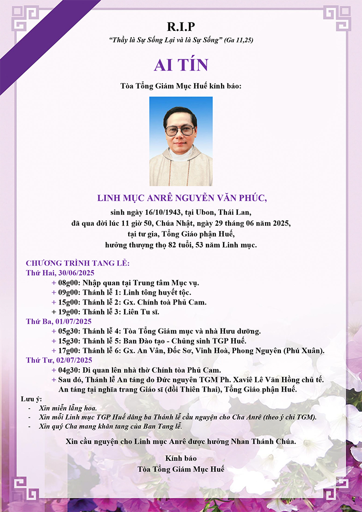 Ai tín của Toà Tổng Giám Mục Huế: Cố Linh mục Anrê Nguyễn Văn Phúc