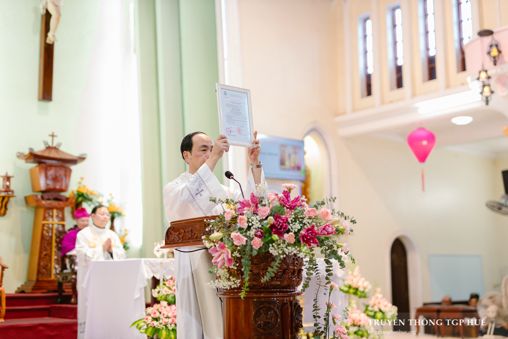 Sau kinh Chúa Thánh Thần, Cha Giorgiô trình văn thư, Cha Hạt trưởng Phaolô công bố văn thư của bề trên TGP bổ nhiệm Cha Giorgiô Nguyễn Thành Phương làm Quản xứ Giáo xứ Đông Hà.