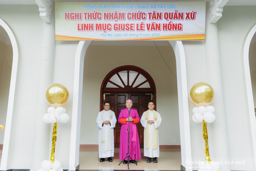Nghi thức nhậm chức Tân Quản xứ Tây Lộc do Đức Cha Giuse Đặng Đức Ngân – Tổng Giám mục TGP Huế chủ sự. Hiệp thông tham dự có Cha Phanxicô Xaviê Nguyễn Văn Thương – Hạt trưởng Hạt Thành phố, quý Cha trong Tổng Giáo phận cùng đông đảo quý Tu sĩ nam nữ, anh chị em giáo dân Giáo xứ Tây Lộc và nhiều Giáo xứ khác.