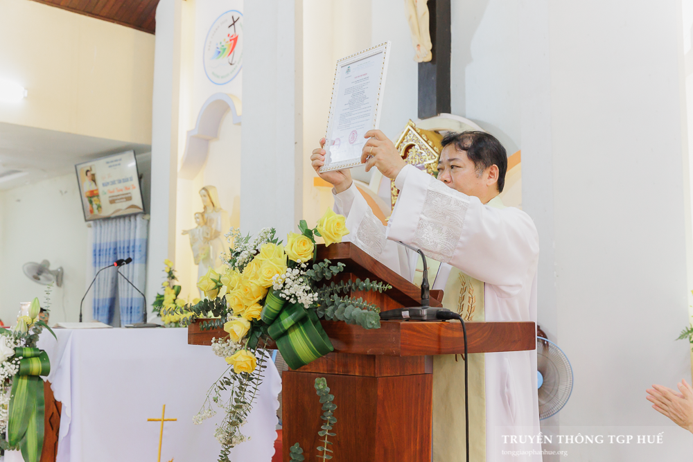 Sau kinh Chúa Thánh Thần, Cha Phaolôtrình văn thư, Cha Hạt trưởng Phanxicô Xaviê công bố văn thư của bề trên TGP bổ nhiệm Cha Phaolô Trương Minh Tiên làm Quản xứ Giáo xứ Kim Đôi.