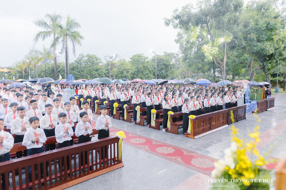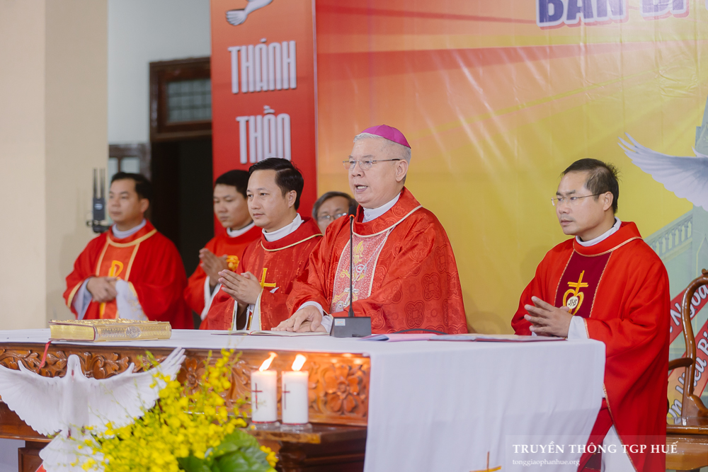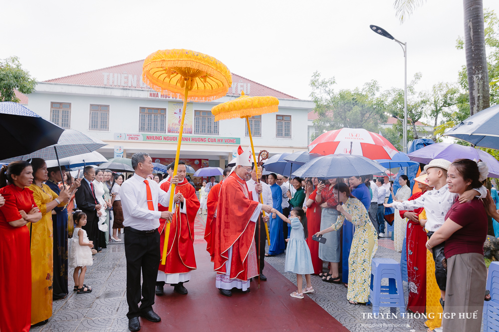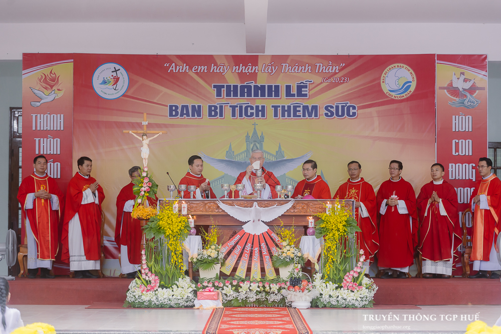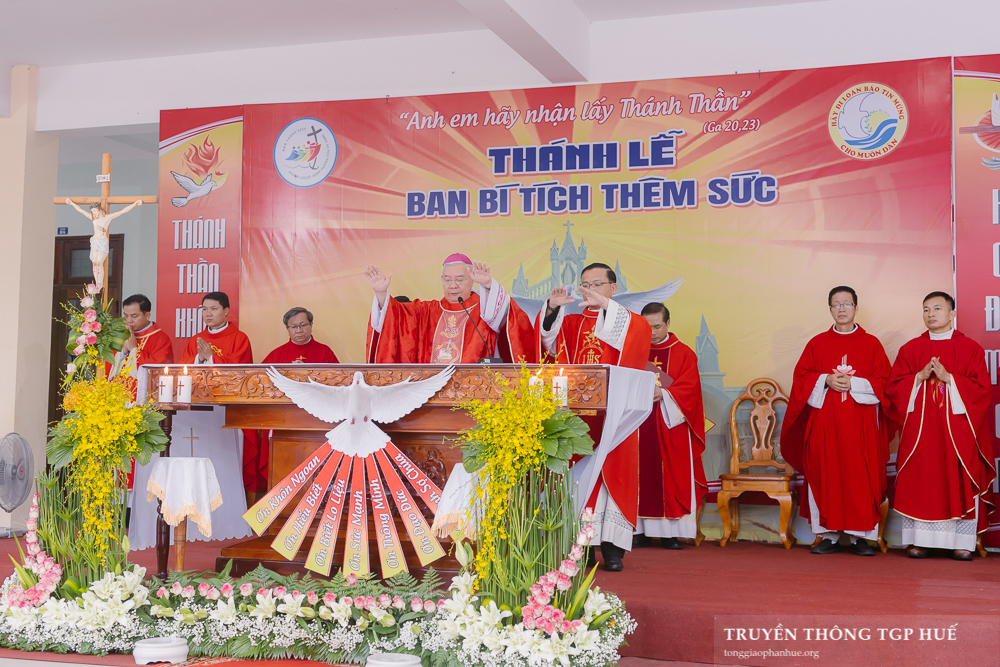 “Hôm nay các em lãnh nhận Bí tích Thêm sức, hồng ân của Chúa Thánh Thần để trở nên những Kitô hữu trưởng thành” – Đó là điều mà Đức Cha Giuse Đặng Đức Ngân – Tổng Giám mục (TGM) Tổng Giáo phận (TGP) Huế khẳng định khi khởi sự Thánh lễ ban Bí tích Thêm sức cho 173 em thiếu nhi thuộc Giáo xứ Hà Úc, An Bằng và Xuân Thiên.
