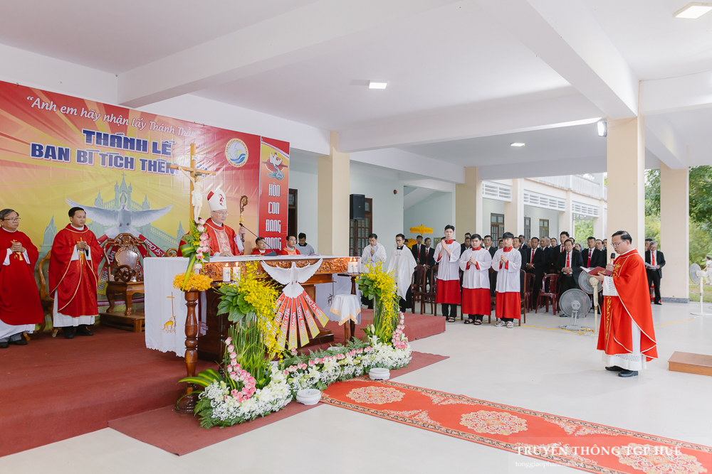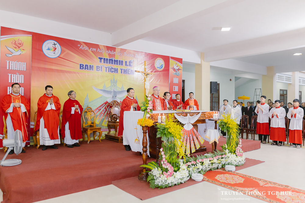 Cùng đồng tế trong Thánh lễ có Cha Giuse Trần Đức Diễn – Hạt trưởng Hạt Tuý Vân, Quản xứ Hà Úc, quý Cha Quản xứ và Phó xứ các Giáo xứ trong Hạt Tuý Vân và quý Cha Dòng Thánh Tâm Huế. Sốt sắng hiệp dâng Thánh lễ có quý Tu sĩ nam nữ, các em Thêm sức, phụ huynh và những người đỡ đầu cùng đông đảo anh chị em các Giáo xứ có liên hệ.