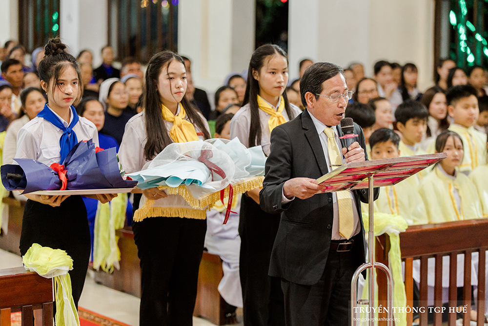 Đúng 19g15, giờ Canh thức Giáng Sinh đã bắt đầu với chủ đề “Đức Giêsu Kitô – Ngôi Lời nhập thể, ánh sáng của muôn dân”. Ngoài sự tham dự đầy yêu thương của Đức TGM Giuse, Cha Giuse Trần Đức Diễn – Quản xứ Hà Úc, Cha Matthêu Nguyễn Thành – Phó xứ, còn có Cha Gioan Baotixita Lê Khoa Vi – Chánh Văn phòng Toà TGM Huế, Cha Đaminh Lê Duy Linh – Phó Tổng Quản lý, quý Chủng sinh, quý Nữ tu, cùng đông đảo mọi thành phần dân Chúa và anh chị em lương dân trong vùng.