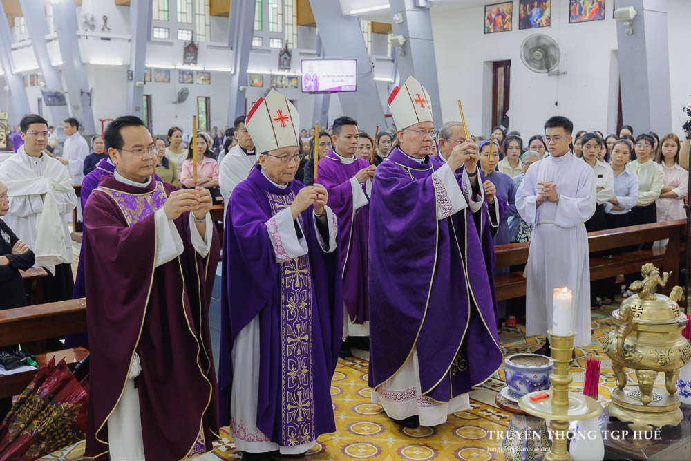 Vì thời tiết không thuận lợi, thay vì tại Nghĩa trang Giáo sĩ (đồi Thiên Thai), Thánh lễ cầu nguyện cho các Giám mục, Linh mục, Tu sĩ và giáo dân TGP Huế đã qua đời được Đức TGM Giuse cử hành lúc 15g00 chiều Chúa nhật ngày 02.11.2025 tại Nhà thờ Chính tòa Phủ Cam.