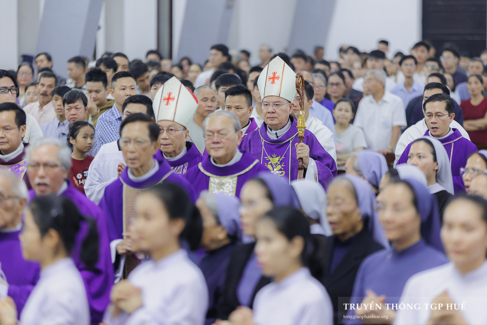 “Thánh lễ hôm nay là một nghĩa cử cao đẹp, là một vẻ đẹp của Đức tin, tình mến và niềm hy vọng. Chúng ta vừa tôn vinh các Thánh trên trời vào ngày hôm qua; thì ngày hôm nay với phận lữ hành, chúng ta cầu nguyện cho các Đấng bậc và mọi người đã qua đời, để khi được ở bên Chúa, các Đấng bậc lại tiếp tục chuyển cầu cho chúng ta. Vinh danh Thiên Chúa qua các Thánh Nam Nữ ở trên trời và cầu nguyện cho những người đang còn đau khổ nơi luyện ngục, đặc biệt là đang chờ đợi Lòng Thương xót của Thiên Chúa.” Đó là những tâm tình mà Đức Cha Giuse Đặng Đức Ngân – Tổng Giám mục (TGM) Tổng Giáo phận (TGP) Huế mời gọi cộng đoàn khi khởi sự Thánh lễ cầu nguyện cho các Giám mục, Linh mục, Tu sĩ và giáo dân TGP Huế đã qua đời.