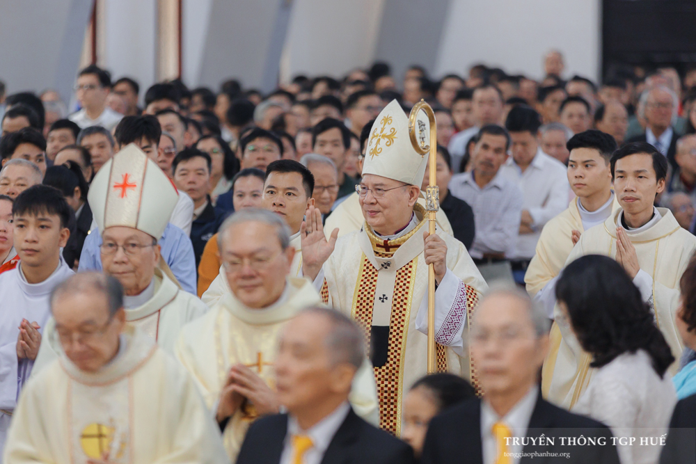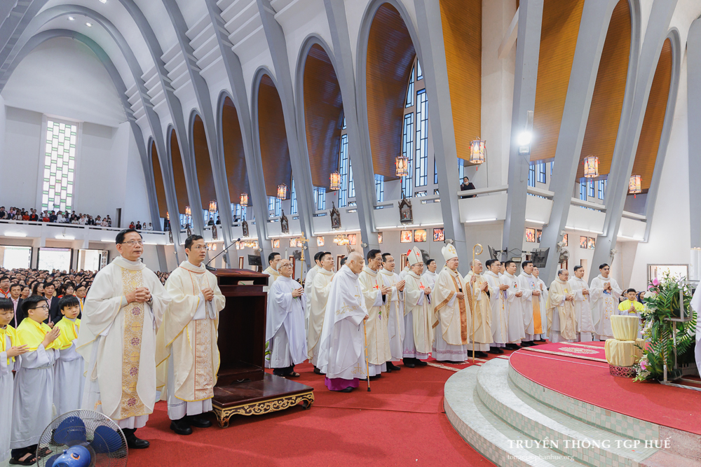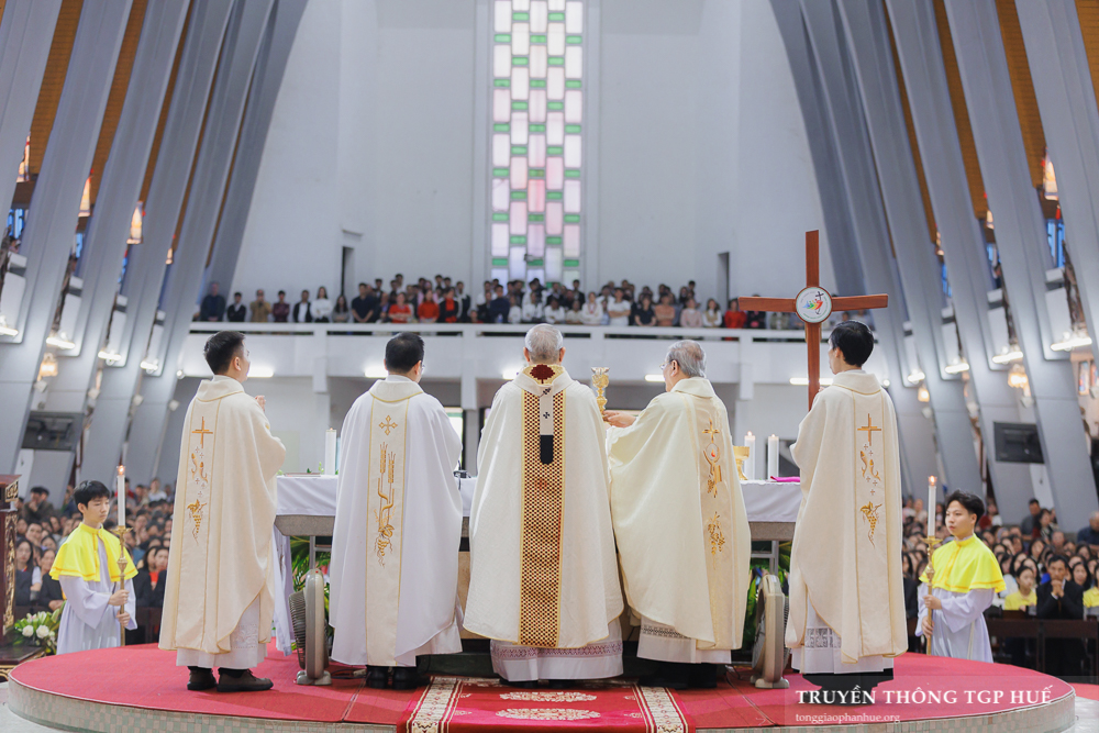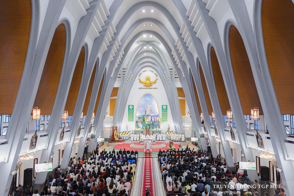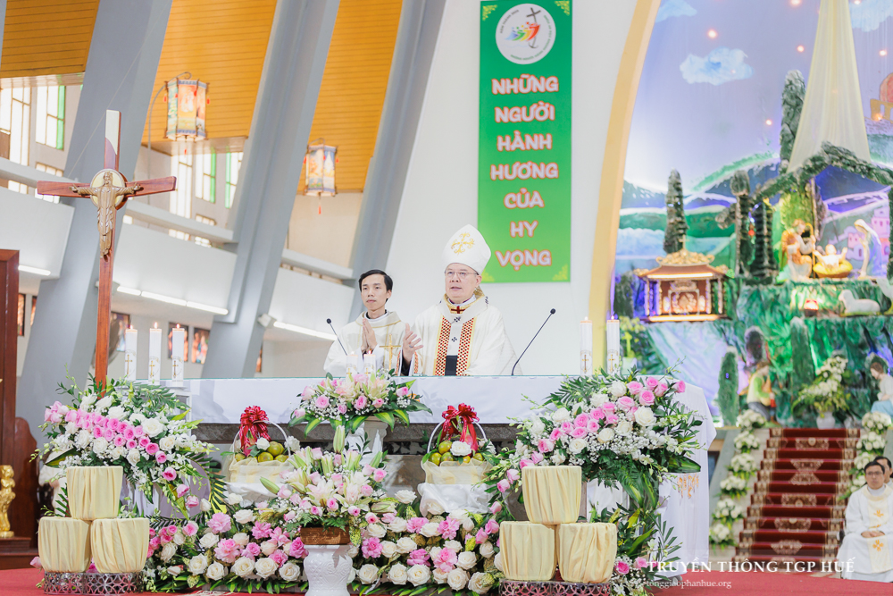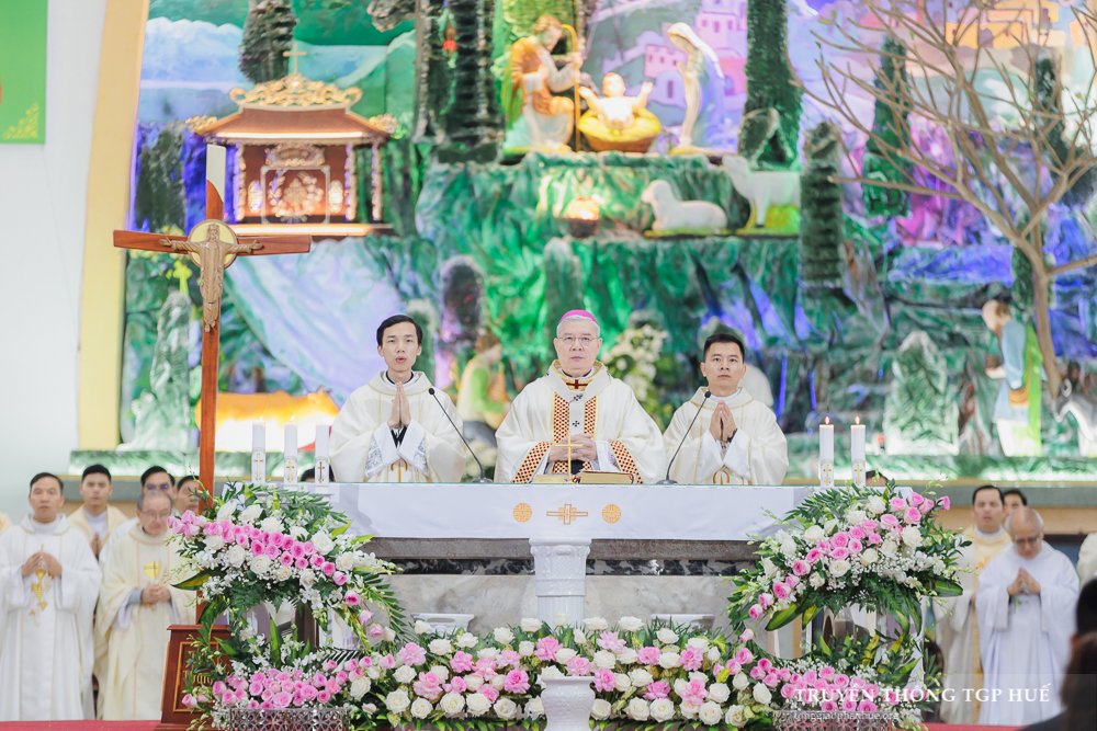 Thánh lễ Đại triều mừng Chúa Giáng Sinh được cử hành lúc 08g30 sáng ngày 25.12.2025 tại Nhà thờ Chính tòa Phủ Cam. Cùng đồng tế có Đức Cha Phanxicô Xaviê Lê Văn Hồng – Nguyên TGM TGP Huế, Cha Barnaba Trần Đình Phục – Tổng Đại diện, Cha Đaminh Phan Hưng – Đại diện Giám mục, quý Đức Ông, quý Cha triều và quý Cha dòng trong TGP. Hiệp dâng Thánh lễ có đông đảo nam nữ Tu sĩ, Chủng sinh và anh chị em giáo dân.