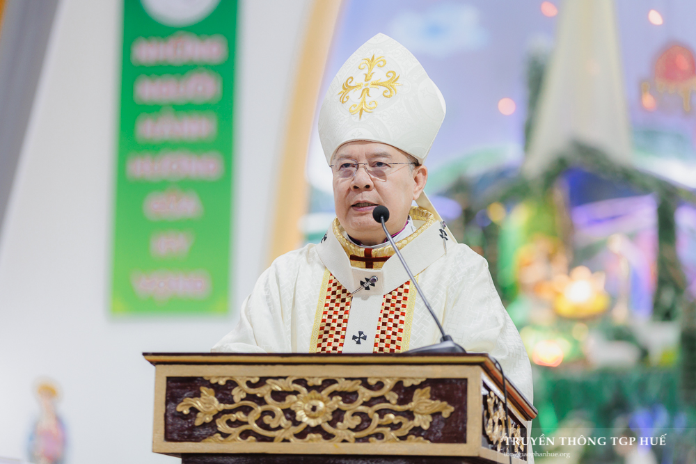 “Hôm nay là ngày của tình yêu, ngày trời đất giao thoa với con người, giữa con người với tạo vật và với nhau để cảm nhận mầu nhiệm tình yêu đến tận cùng: Ngôi Hai Thiên Chúa đã nhập thể làm người vì chúng ta, cho chúng ta và đồng hành với chúng ta để cứu độ chúng ta.” Đó là một trong những tâm tình mà Đức Cha Giuse Đặng Đức Ngân – Tổng Giám mục (TGM) Tổng Giáo phận (TGP) Huế gợi lên cho mọi thành phần dân Chúa tham dự Thánh lễ Đại triều mừng Chúa Giáng Sinh năm 2025.