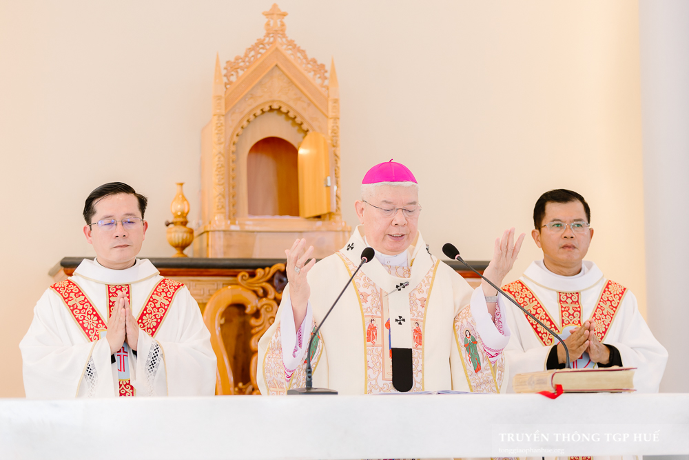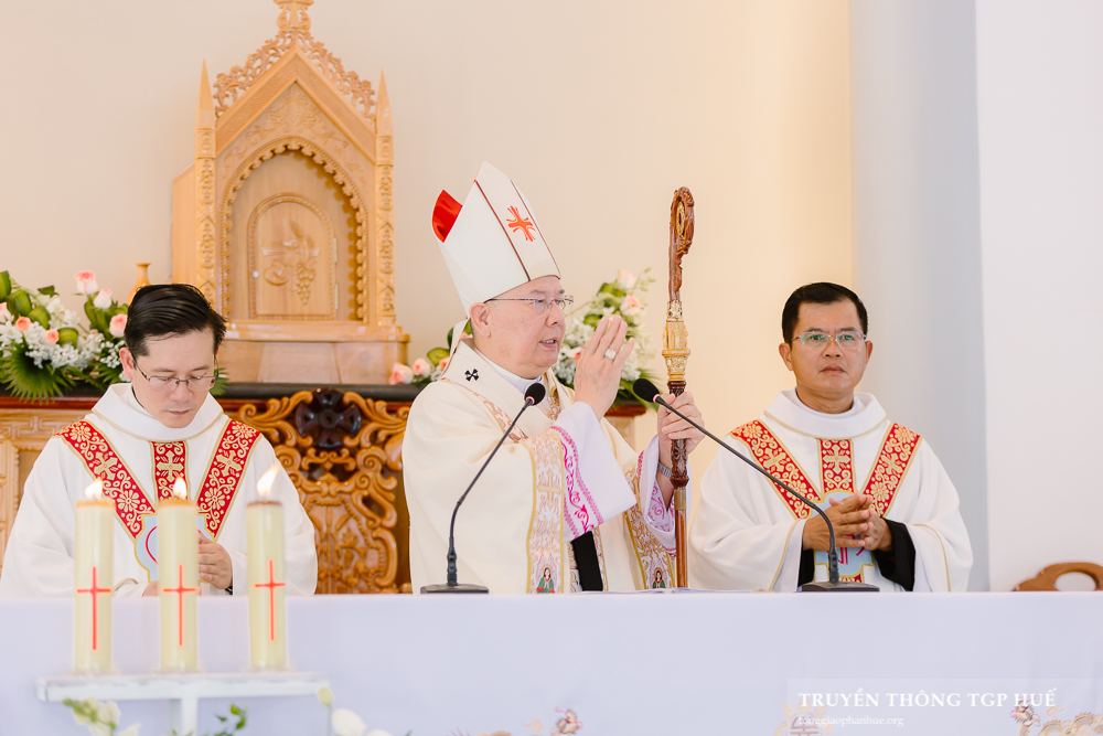 Với cộng đoàn Giáo họ Đập trong Thánh lễ Khánh thành và Làm phép Nhà thờ mới hôm nay, Đức TGM Giuse nói lên ước mơ của giáo dân nơi đây sau khi ngôi Nhà thờ cũ bị bình địa sau biến cố Mậu Thân 1968. “Ngôi Nhà thờ mới không chỉ là nơi che nắng che mưa khi dâng lễ, đây là nơi thánh thiêng, nơi Lời Chúa được công bố, Bí tích được cử hành, cộng đoàn được quy tụ trong tình yêu và hiệp nhất.” Liên hệ đến Đền thờ thiêng liêng nơi tâm hồn mỗi tín hữu, Đức TGM Giuse mời gọi mỗi người hãy xây dựng nơi Thiên Chúa ngự trị là tâm hồn mỗi người nên vững mạnh nhờ sự hiệp nhất, công chính, bác ái, yêu thương. Giáo họ Đập đã chọn lễ Sinh nhật Đức Maria làm lễ Bổn mạng. Kết thúc bài giảng, Đức TGM mời gọi mọi thành phần trong Giáo họ hãy sống theo thánh ý Chúa, vâng phục và tín thác tuyệt đối để trở nên ngôi Đền thờ sống động như Mẹ Maria.