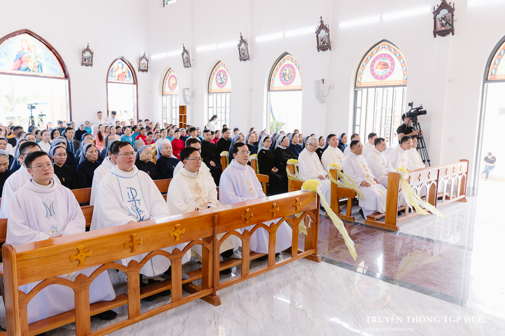 Sốt sắng hiệp dâng Thánh lễ có quý Tu sĩ nam nữ, Chủng sinh, quý ân nhân, quan khách, đại diện chính quyền địa phương, đại diện làng xóm cùng đông đảo anh chị em giáo dân Giáo họ Đập và Giáo xứ Nước Ngọt.