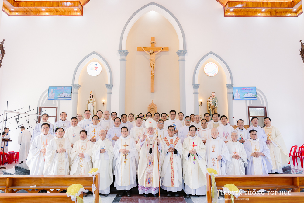 Đồng tế trong Thánh lễ có Cha Barnaba Trần Đình Phục – Tổng Đại diện, Chưởng ấn và Đại diện Tư pháp TGP, Đức Ông Giêrônimô Nguyễn Ngọc Hàm, Đức Ông Antôn Dương Quỳnh, Cha Phanxicô Xaviê Nguyễn Thiện Nhân – Quản xứ Nước Ngọt, quý Cha Hạt trưởng, quý Cha Nguyên Quản xứ, quý Cha đồng hương Nước Ngọt cùng quý Cha trong TGP Huế, quý Cha Giáo phận Đà Nẵng, quý Cha Giáo phận Kontum.