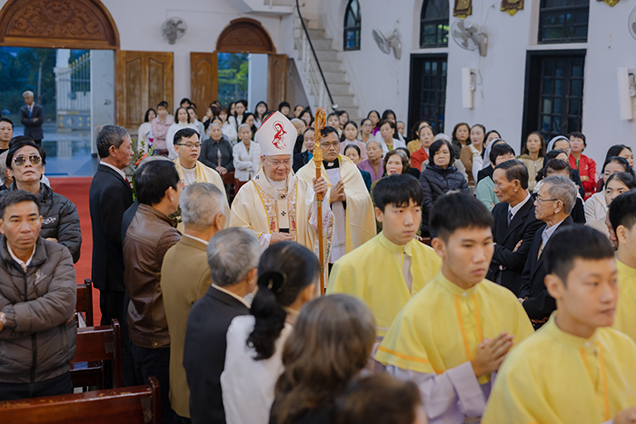 Sáng Chúa Nhật ngày 23.11.2025, trong cơn mưa nhẹ và tiết trời se lạnh, cộng đoàn Giáo xứ Phú Hậu hân hoan vui mừng chào đón Đức TGM Giuse Đặng Đức Ngân – Tổng Giám mục TGP Huế viếng thăm mục vụ và chủ tế Thánh Lễ Chúa Giêsu Kitô – Vua vũ trụ. Đây là lần đầu tiên Đức TGM Giuse đến thăm viếng Giáo xứ trong cương vị Chủ chăn Giáo phận để khích lệ bà con sau những ngày mưa lụt vừa qua. Cử chỉ đó nói lên tấm lòng yêu thương của ngài dành cho đoàn chiên nhỏ bé Giáo xứ Phú Hậu.