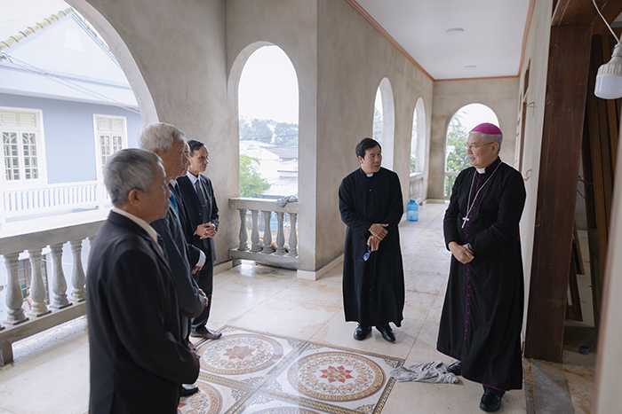 Sau Thánh lễ, Đức TGM Giuse ghé thăm công trình nhà Mục vụ Giáo xứ đang trong tiến trình hoàn thiện. Dự kiến sẽ được làm phép vào dịp lễ Thánh Tâm Chúa Giêsu – Bổn mạng Giáo xứ vào tháng 06.2026. Công trình nhà Mục vụ không chỉ dùng cho các sinh hoạt của Giáo xứ mà còn để đón tiếp anh chị em lương giáo đến tránh lụt bão. Đức TGM Giuse động viên, khích lệ và cầu nguyện cho công trình sớm được hoàn thành.