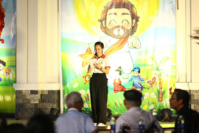 Chia sẻ niềm vui cùng Giáo xứ An Đôn, có sự hiện diện rất trân quý của Cha Cựu Quản xứ Gioan Baotixita Lê Quang Quý, quý chị mục vụ và 65 bạn trẻ sinh viên đến từ Huế. Trong bầu khí chan hòa thân thương, Cha Gioan Baotixita đã gửi đến cộng đoàn và đặc biệt các thiếu nhi những tâm tình yêu thương, thể hiện sự quan tâm và đồng hành của người “Cha già” dành cho đoàn con cái của mình.