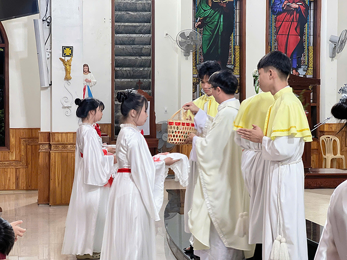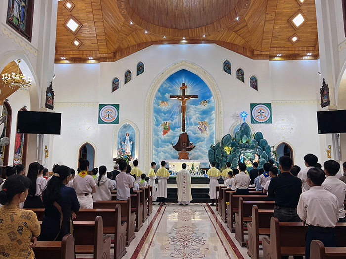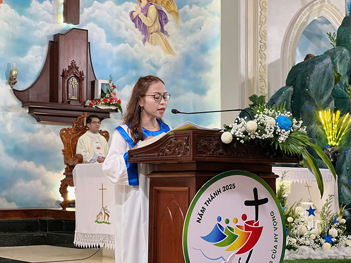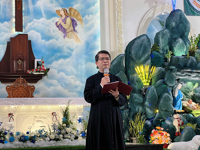 Cao điểm của đêm Giáng Sinh là Thánh lễ trọng thể mừng Con Thiên Chúa nhập thể làm người, do Cha Quản xứ Augustinô Nguyễn Đại Vũ chủ tế. Xuyên suốt Thánh Lễ, Cha chủ tế nhấn mạnh: Hài Nhi Giêsu là kết tinh tình yêu của Thiên Chúa dành cho nhân loại. Tình yêu đã đi đến tận cùng vì đã trao ban cho nhân loại món quà cao quý nhất không gì có thể so sánh được. Trao ban Đức Giêsu là cho tất cả, không còn có thể cho thêm gì nữa.
