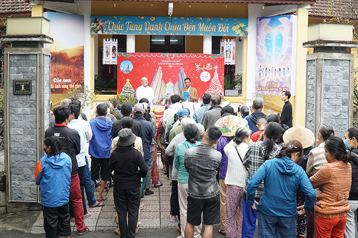 1/ Bữa cơm yêu thương “Gánh nhau trong đời 4” do vợ chồng anh chị Têrêxa Trương Thị Khánh Trang (Tina) và anh Phaolô Nguyễn Tấn Thanh, đồng hương Phủ Cam từ xa về thăm quê hương. “Gánh nhau trong đời 4” được tổ chức tại nhà mục vụ Giáo xứ lúc 10g30 thứ Bảy ngày 20.12.2025 cho 220 bà con khó khăn trong thành phố không cùng tín ngưỡng, không cùng niềm tin, cùng nhau ngồi lại trong một bàn ăn tâm tình trò chuyện tạo nên mối thân ái trong cộng đồng.