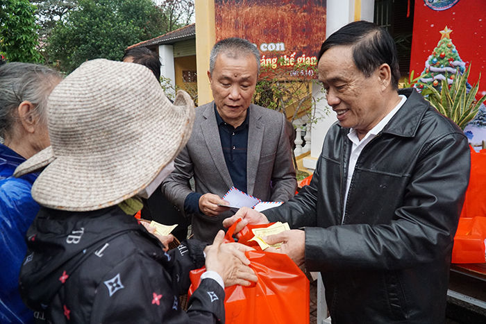 Khai mở các chương trình, Cha Quản xứ Đaminh mời gọi bà con lắng đọng tâm hồn hướng về Chúa qua lời Kinh Chúa Thánh Thần. Sau đó ngài phát biểu chào mừng và nói lên ý nghĩa cũng như giới thiệu và cám ơn đến các mạnh thường quân, đã đồng cảm trong tình yêu thương và cùng với Giáo xứ tổ chức các chương trình thật ý nghĩa đem niềm vui Chúa Giáng Sinh đến với bà con.