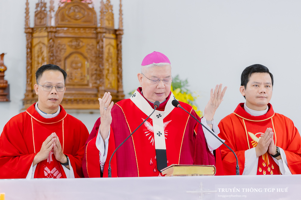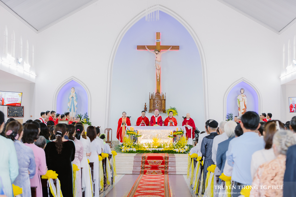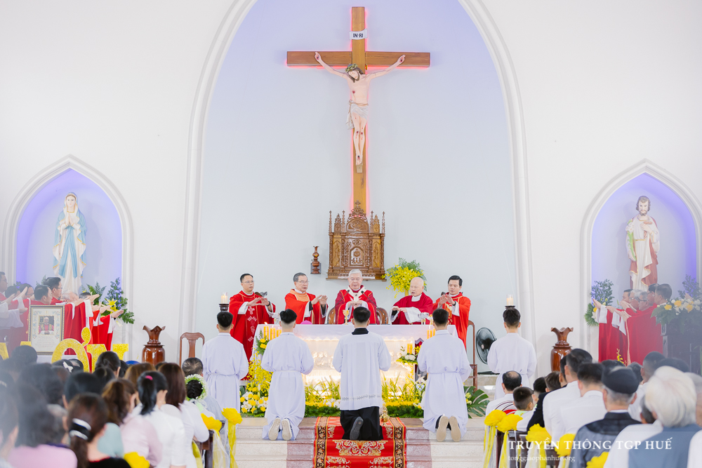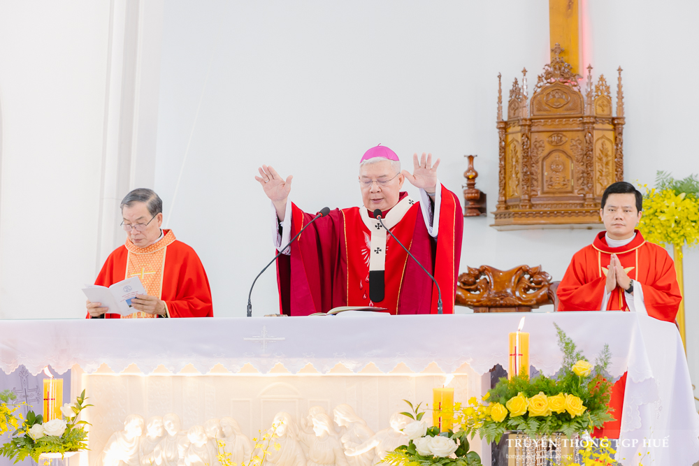 Cùng đồng tế với Đức TGM Giuse trong Thánh lễ này, có Đức Ông Giêrônimô Nguyễn Ngọc Hàm, Cha Giacôbê Nguyễn Xuân Lành – Đặc trách Đào tạo, Giám đốc Tiền Chủng viện Huế, Cha Phaolô Nguyễn Luận – Quản xứ Cự Lại cùng quý Cha trong TGP.