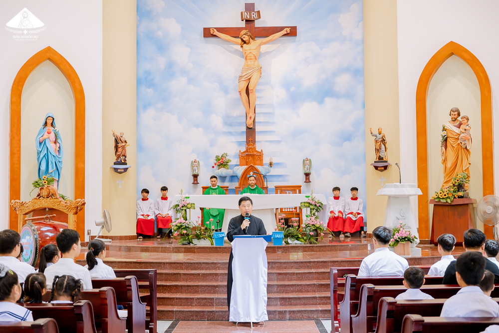 Trong bài giảng lễ, Cha Giuse nhắc đến tầm quan trọng của việc học hỏi Giáo lý. Trong bối cảnh ngày nay với sự phát triển không ngừng của trí tuệ nhân tạo giúp cho con người dễ dàng hơn trong công việc và học tập. Nhưng nó chỉ là các công cụ hỗ trợ mà thôi, không thể thay thế cho cảm xúc, đức tin và tâm hồn của con người. Bên cạnh đó, giữa guồng quay cuộc sống, con người dần dần xem nhẹ việc học Giáo lý, không còn dành nhiều thời gian để học hỏi và đào sâu Giáo lý nên dần dần xa cách Chúa hơn. Vậy nên, Giáo lý rất cần thiết và quan trọng. Giáo lý không phải là một môn học thuần túy kiến thức nhưng đó là phương cách hữu hiệu để củng cố đức tin, nâng cao tâm hồn và giúp người tín hữu biết cách sống xứng đáng là con cái của Thiên Chúa. Ngài nhắn nhủ và mời gọi mọi người hãy dành sự ưu tiên cho việc học hỏi Giáo lý, Ngoài ra, Cha Giuse còn nhắc đến tầm quan trọng và mời gọi các Giáo lý viên ý thức về sứ mạng của mình.