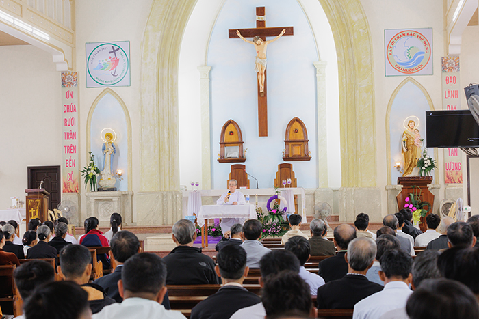 Giờ tĩnh tâm do Cha Giuse Lê Công Đức, Giáo sư Đại Chủng viện Huế hướng dẫn với chủ đề “Tội lỗi của ta và lòng thương xót của Chúa”.