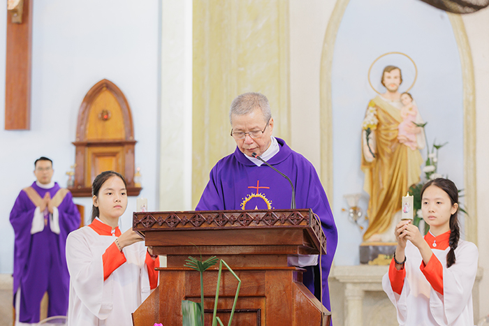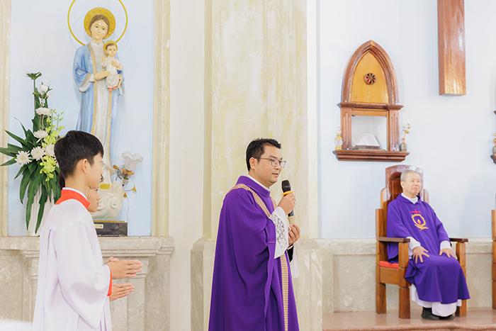 Mở đầu Thánh lễ, Cha Quản xứ Giuse nhắc nhớ cộng đoàn về ý nghĩa của Mùa Vọng. Ngài mời gọi cộng đoàn dùng những ngày quý giá của Mùa Vọng để chuẩn bị trong ngoài, hầu cung lòng mỗi người cũng như khuôn viên Giáo xứ trở nên xứng đáng cho Chúa ngự đến.