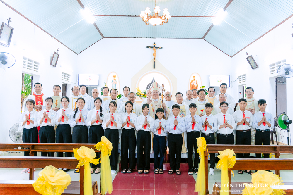 Lúc 09g00 sáng Chúa nhật ngày 28.09.2025, Giáo xứ Tiên Nộn hân hoan đón chào Đức Cha Giuse Đặng Đức Ngân – Tổng Giám mục (TGM) Tổng Giáo phận (TGP) Huế về chủ sự Thánh lễ Tạ ơn mừng 125 năm thành lập Giáo xứ, làm phép đài Lòng Chúa Thương xót và ban Bí tích Thêm sức cho 15 em thiếu nhi.