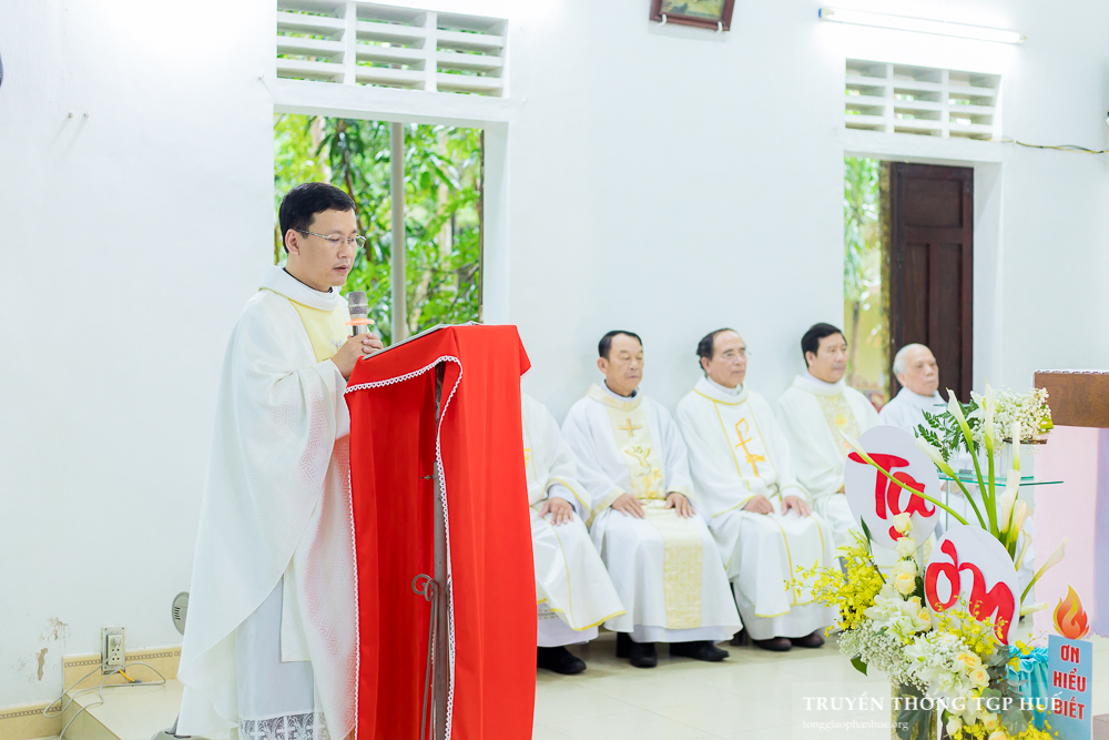 Sau lời nguyện hiệp lễ, vị đại diện Hội đồng Giáo xứ Tiên Nộn bày tỏ tâm tình tri ân Đức TGM Giuse, quý Cha và những người đã yêu thương cầu nguyện và cộng tác tổ chức Thánh lễ.