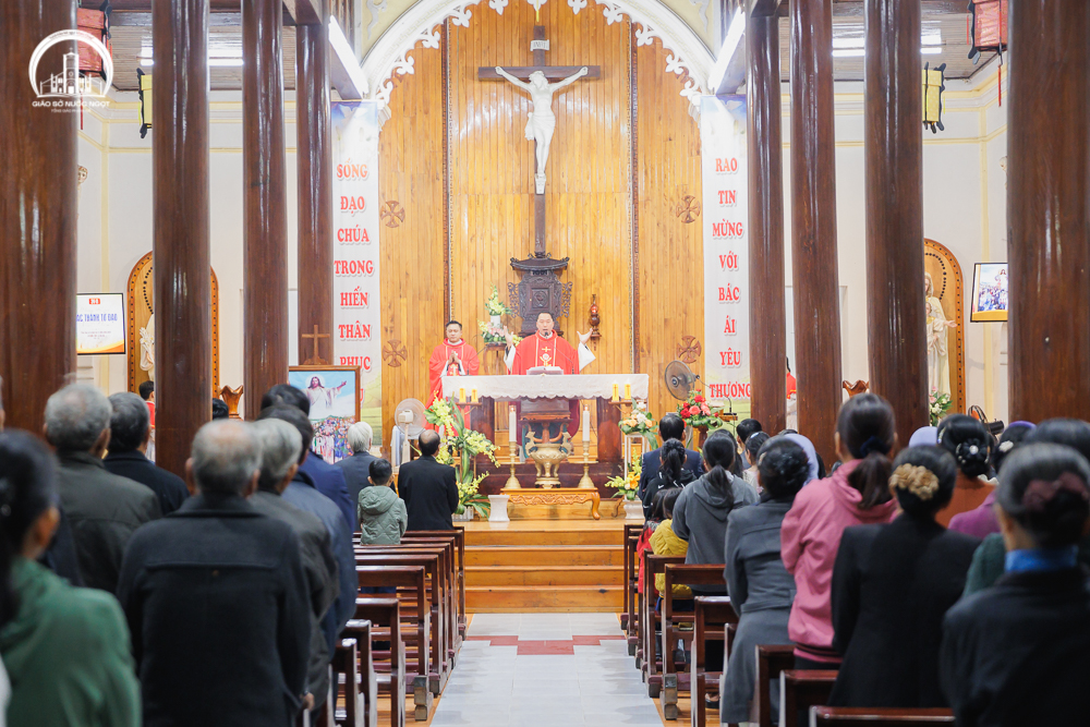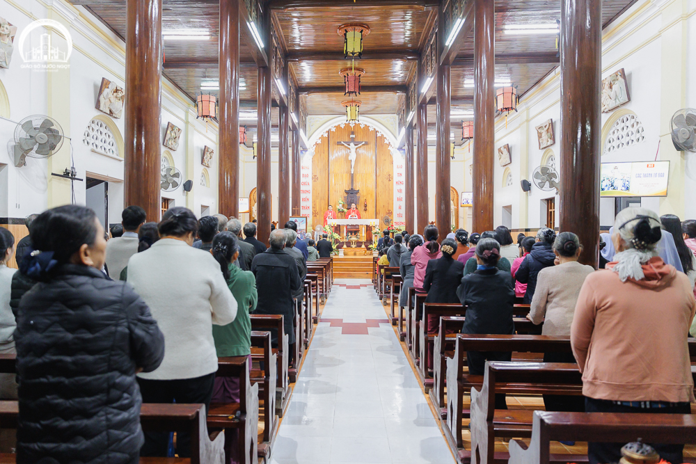 Thánh lễ tiếp nối với kinh Tin kính, lời nguyện tín hữu và phần phụng vụ Thánh Thể sốt sắng trong ngôi nhà thờ cổ kính của Giáo xứ.