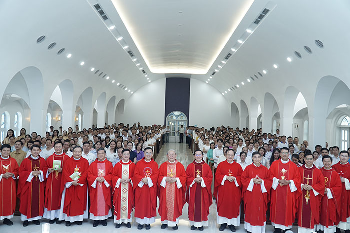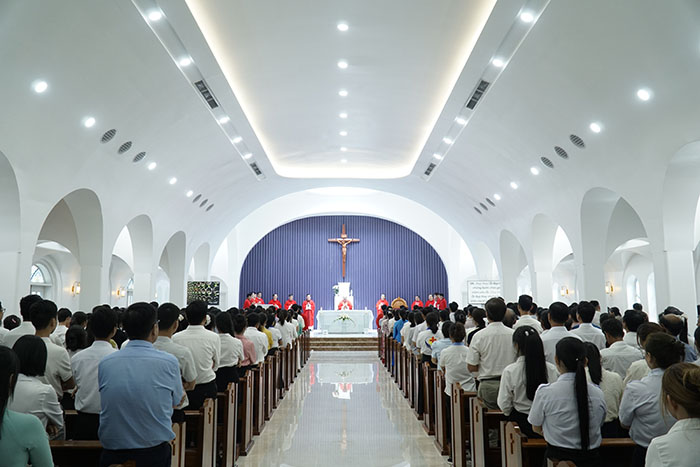 Thánh lễ diễn ra tại Nhà nguyện của Trung tâm Mục vụ trong bầu khí trang nghiêm, sốt sắng.