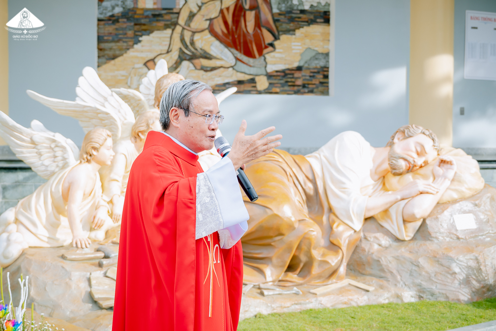 Sau Thánh lễ, cộng đoàn dân Chúa tề tựu đông đủ trước tượng Thánh Giuse ngủ để cùng tham dự Nghi thức Làm phép do Cha Giuse Hồ Thứ chủ sự. Cha Giuse tóm lược ý nghĩa của Tượng Thánh Giuse ngủ để cộng đoàn thêm lòng yêu mến. Ngài đặc biệt nhấn mạnh đến sự lao động không mệt mỏi cùng sự phó thác tin yêu và sẵn sàng làm theo thánh ý Thiên Chúa.