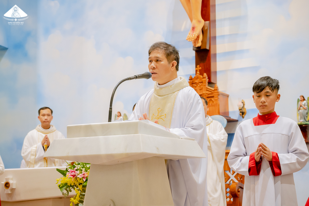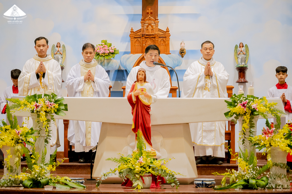 Thánh lễ do Cha Quản xứ Phêrô chủ tế, cùng đồng tế có sự hiện diện của Cha Giuse Hồ Thứ – Nguyên Giám đốc Đại Chủng viện Huế, Cha Giuse Nguyễn Thanh Tùng – Phó xứ, Cha Giuse Mai Văn Nghiễm – Nguyên Phó xứ Đốc Sơ. Hiệp dâng Thánh lễ còn có Thầy Phó tế Phêrô Nguyễn Sơn Tùng – người con của Giáo xứ, Thầy giúp xứ Phêrô Cồ Ngọc Hải, quý Nữ tu cộng đoàn Mai Khôi và đông đảo cộng đoàn dân Chúa Đốc Sơ.