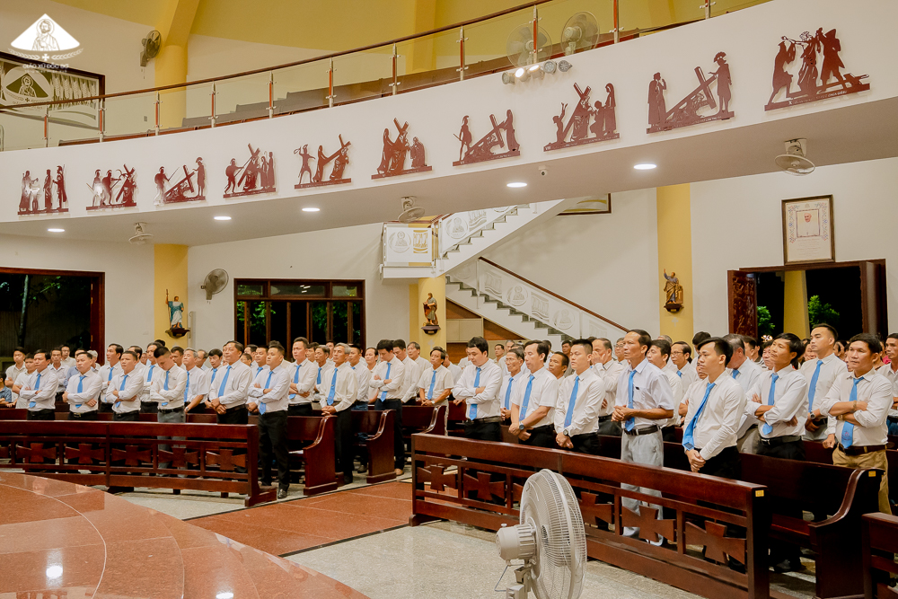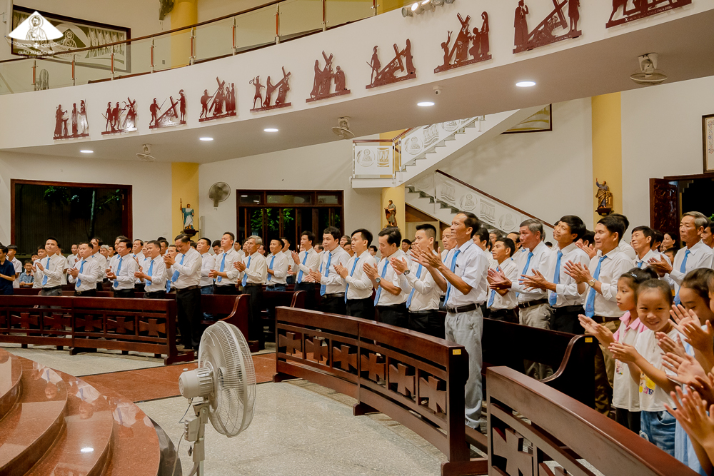Lúc 17g30 ngày 27.06, các Gia trưởng đã quy tụ về Nhà thờ Giáo xứ, tham dự giờ tĩnh tâm do Cha Nicôla Đinh Trung Tâm, OSB (Dòng Biển Đức Thiên An) thuyết giảng. Với chủ đề của giờ tĩnh tâm này, Cha Nicôla gợi hứng cho các Gia trưởng về giá trị việc yêu mến Chúa Giêsu Thánh Thể và vai trò của Người trong đời sống gia đình cùng việc nuôi dạy con cái.